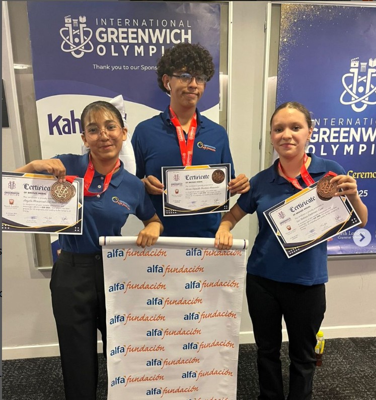 Luz Valeria Gutiérrez, Ángela Monserrat del Valle y Aarón Martínez representaron a México en la International Greenwich Olympiad 2025 en Londres, destacando entre más de 350 proyectos de 53 países y conquistando una medalla de bronce.